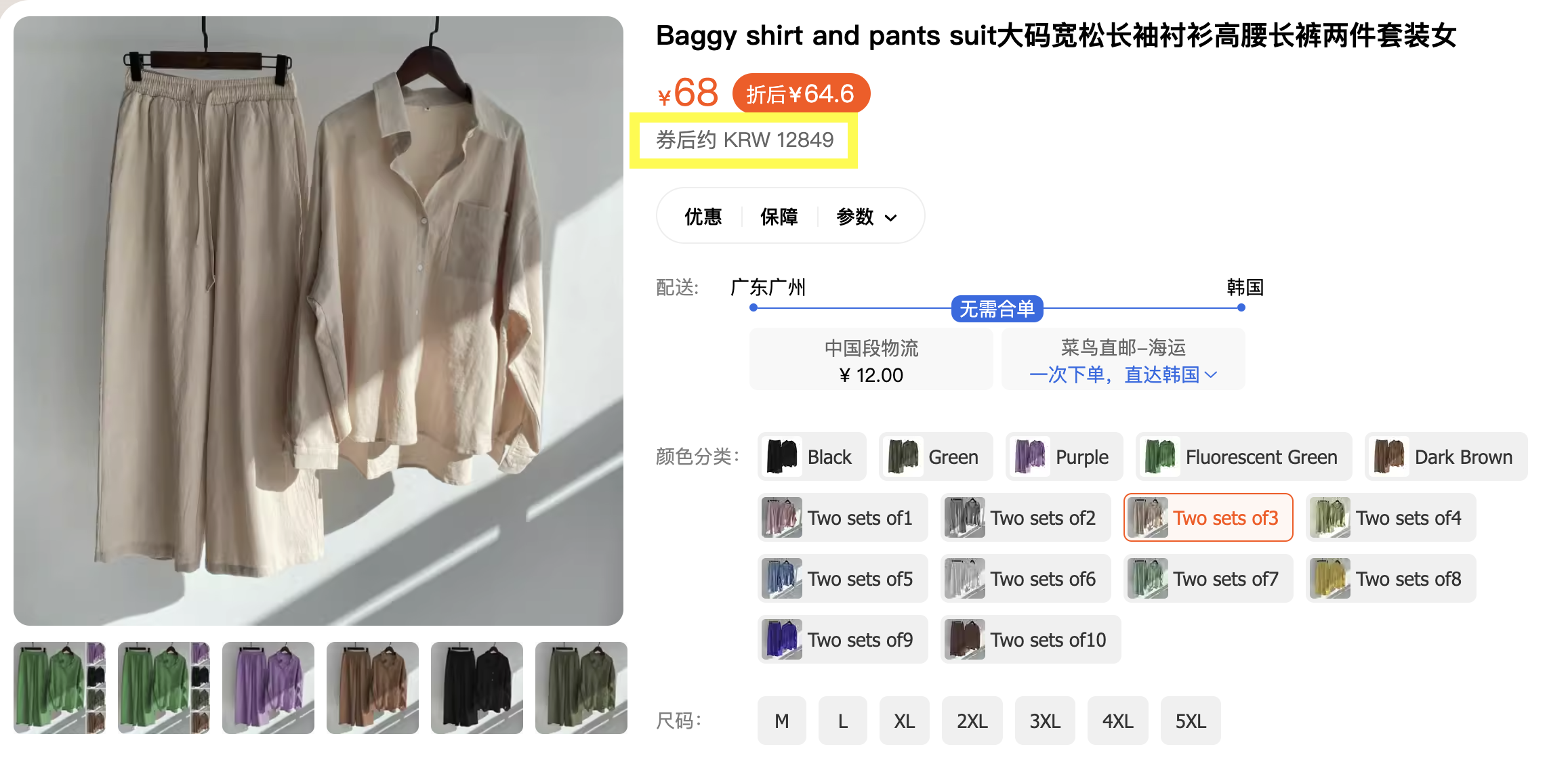 4. 한국으로 직배송이 되는 상품인지, 합배송이 되는 상품인지 확인하고 장바구니 담기.
