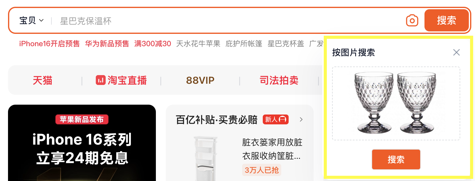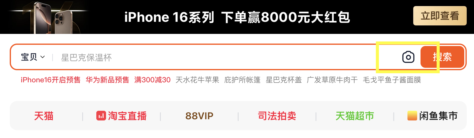 타오바오의 가장 큰 장점은 바로 이미지 검색입니다. 원하는 제품을 '중국어'로 찾기 힘들고 한국어 검색 기능을 제공하지 않기 때문에 앱이나 pc에서 사이트 사용 자체가 언어의 장벽으로 어렵게 느껴질 수 있는데요, 타오바오는 사실 언어의 장벽이 그렇게 높지 않습니다. 바로 이미지 검색 기능이 너무 잘되어 있기 때문이죠.