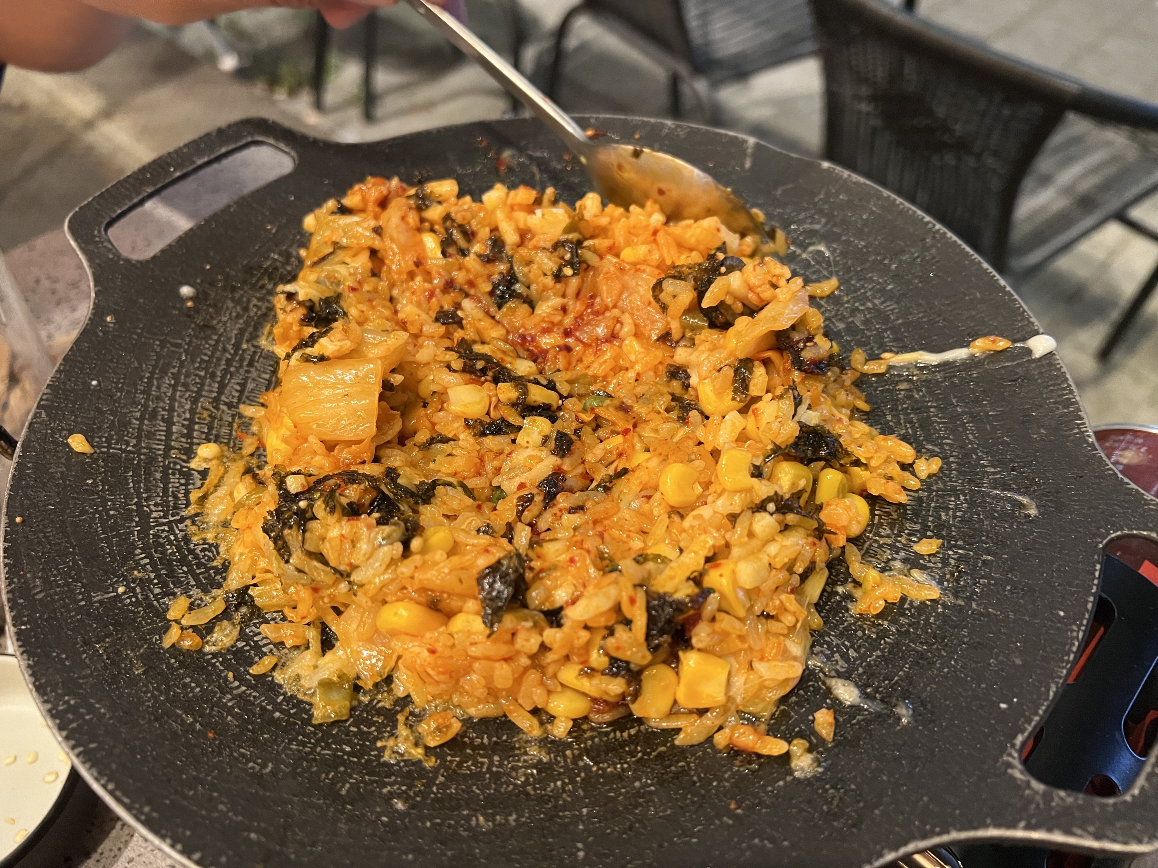 마무리 김치볶음밥. 김치볶음밥도 미리 조리해주셔서 나와서, 바로 먹을 수 있었다. 빨리빨리 바로 조리과정의 기다림 필요없이 먹을 수 있는게 동탄역 곱창집 #부자곱의 포인트였다.