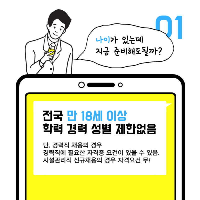 공무원을 준비하는 사람들은 20대 30대만 있을 거라 생각하고 누구나 도전할 수 있는 9급 공무원에 대한 준비나 도전조차 생각하지 않는 경우가 많다. 실제로 시설관리직 공무원으로 정년퇴직을 한 아버지는 항상 시설직 공무원에 대한 칭찬과 추천 권유를 아끼지 않았고, 30~40대 경력이 단절되었던 여성분들이 사회로 복귀할 때 시설직 공무원 시험을 보호 신규입사한 경우도 많다는 이야기를 해주셨다. 공무원 시험준비의 최대 난관인 영어시험이 없다는 장점이 있는 9급 공무원 시설직에 대해서 더 자세히 알아보자.