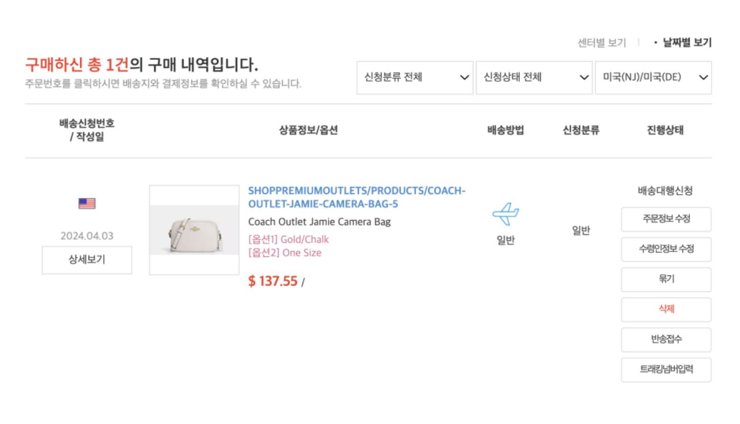 - 실제로 스마트 스토어에서 코치 미국아울렛 상품을 구매대행한 적도 많았는데, 배송이 20일 이상 소요되는 경우가 너무 많아 배송 컴플레인이 자주 발생하는 터라 판매를 모두 중단했다.